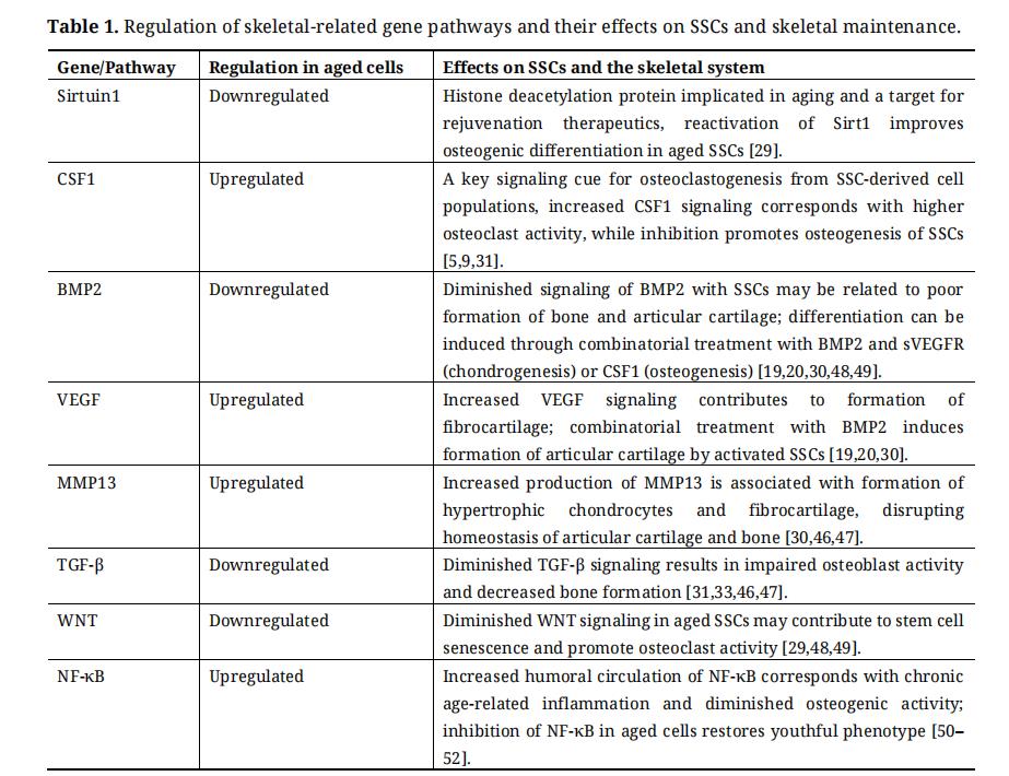 Table 1. Regulation of skeletal-related gene pathways and their effects on SSCs and skeletal maintenance.