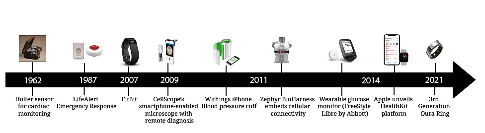 Technological advantages within the category of “Internet-of-Things” (IoT) has enabled passive and remote monitoring of data collected across various industries and applications due to ubiquitous internet connectivity, advances in the miniaturization of wireless hardware technologies, and improvements in a wide variety of sensor technologies. Naturally, these advancements have started to emerge in healthcare-specific applications [5]. These technologies offer the potential for a variety of applications such as lifestyle management and disease prevention, disease screening, disease diagnosis, and treatment management. IoT technologies have promise in personalized and preventive care because they are capable of collecting health data at a much higher frequency than during bespoke doctor visits. The increasing trend of passivity among IoT devices, whereby data is collected “in the background” and does not require user input, greatly increases both adoption and quantity of health data [6]. Subsequently, as more data becomes available, machine learning (ML) approaches become useful for applying that data towards new and improved healthcare management tools [7].