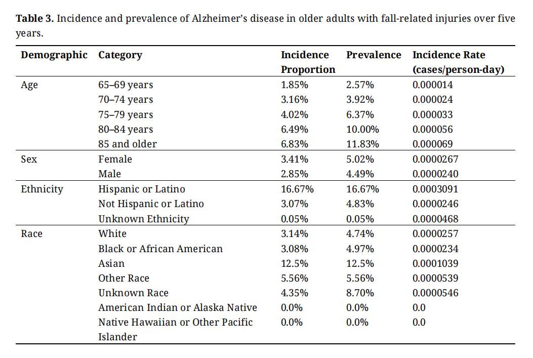 A retrospective study provided significant insights into the incidence and prevalence of falls among older adults diagnosed with Alzheimer’s disease and dementia, and their association with traumatic brain injuries (TBIs). The results underscored the heightened vulnerability of this population to falls and the severe injuries that could arise, such as TBIs.