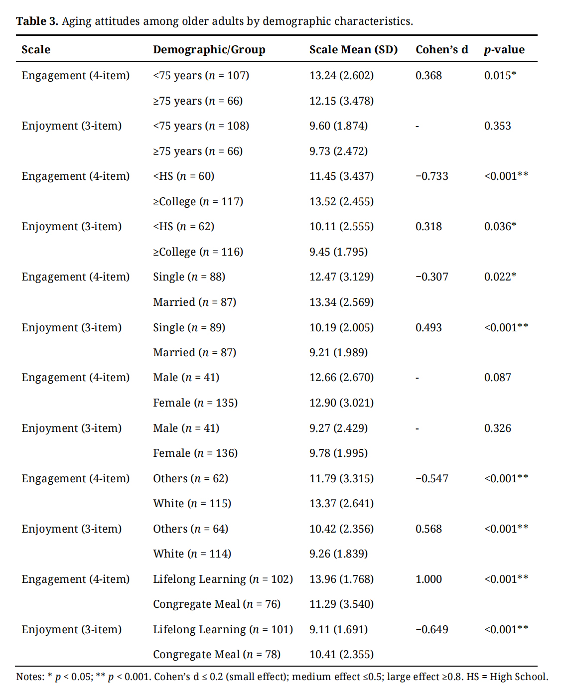 Table 3. Aging attitudes among older adults by demographic characteristics.