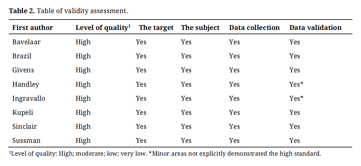 Table 1. The review protocol for validity assessment [8].