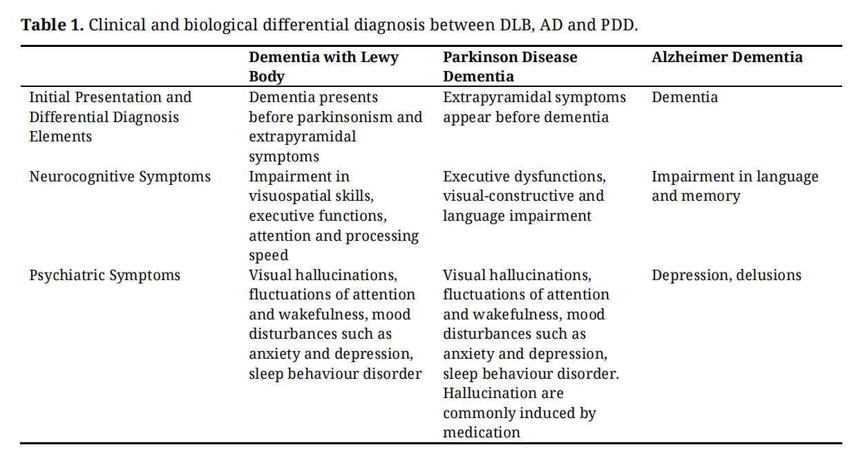 Table 1. Clinical and biological differential diagnosis between DLB, AD and PDD.