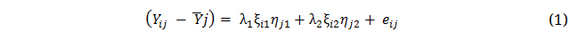 Where, Yij = average yield of ith genotype in jth environment, —Yj = average yield over all genotypes in jth environment and λ1ξi1ηj1 and λ2ξi2η
