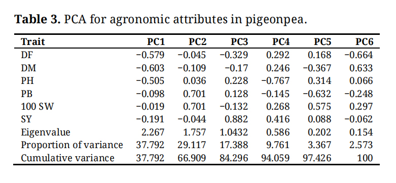 Table 3. PCA for agronomic attributes in pigeonpea.