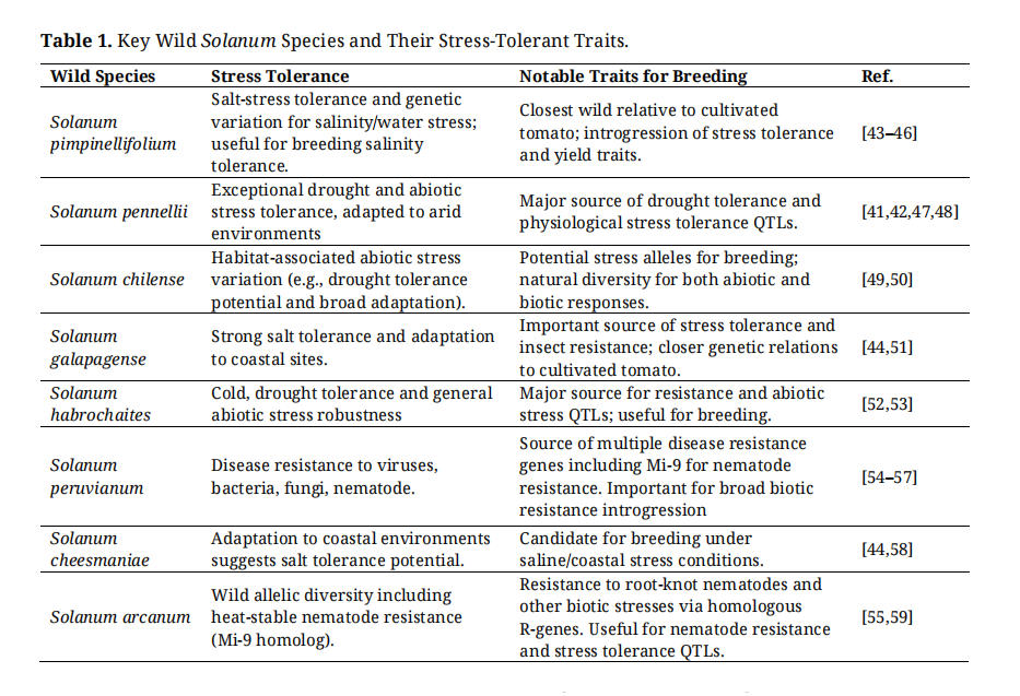 Table 1. Key Wild Solanum Species and Their Stress-Tolerant Traits.
