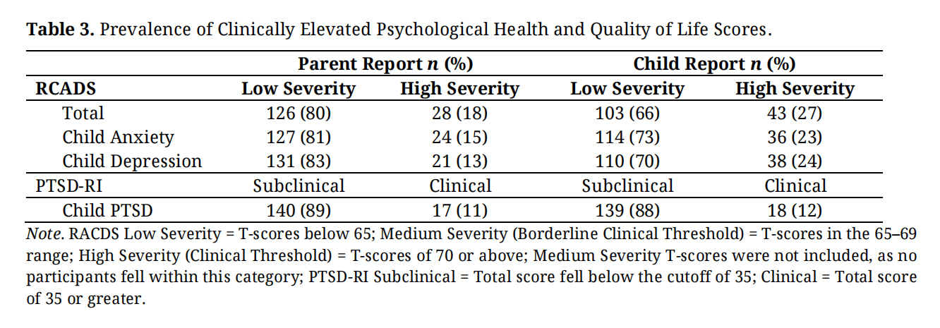 Table 3. Prevalence of Clinically Elevated Psychological Health and Quality of Life Scores.