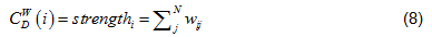 Andstrengthin Eq. (6) is the node strength [19], defined as the sum of weights of node's direct ties, i.e.: