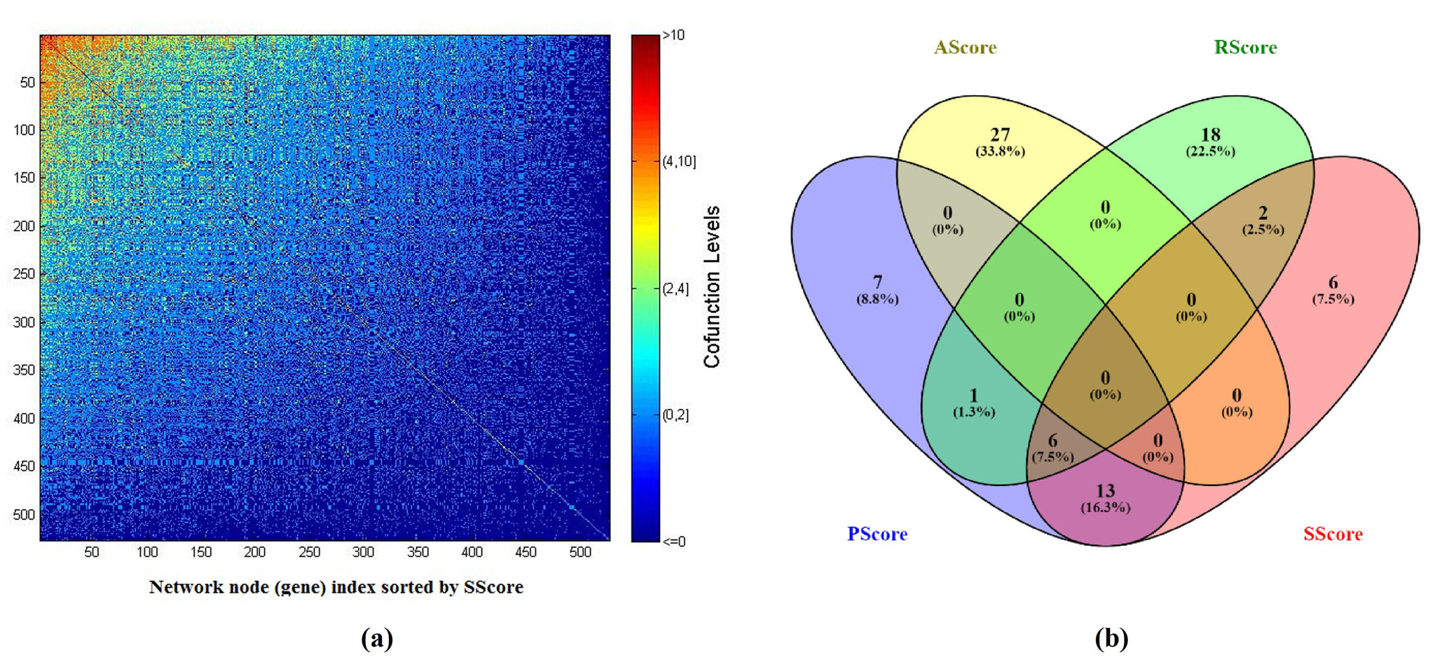 2.4.2 Two enrichment metricsGiven a disease which is associated with a set of pathways ℛ, we then define a pathway score (PScore) as the number of the ℛ pathways which include the gene.