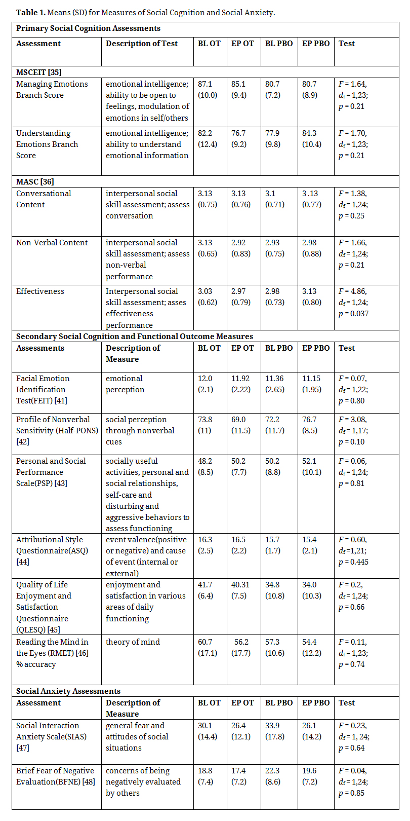 Table 1. Means (SD) for Measures of Social Cognition and Social Anxiety [35-48].