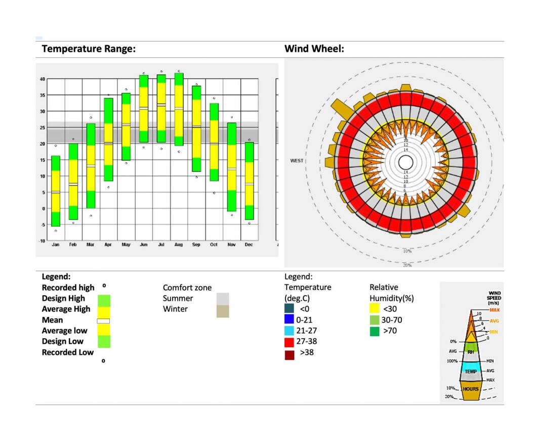 The climate studies for this paper were conducted using Climate Consultant, a graphic-based computer program that helps with the analysis and visualisation of the climate data acquired from the closest weather station.