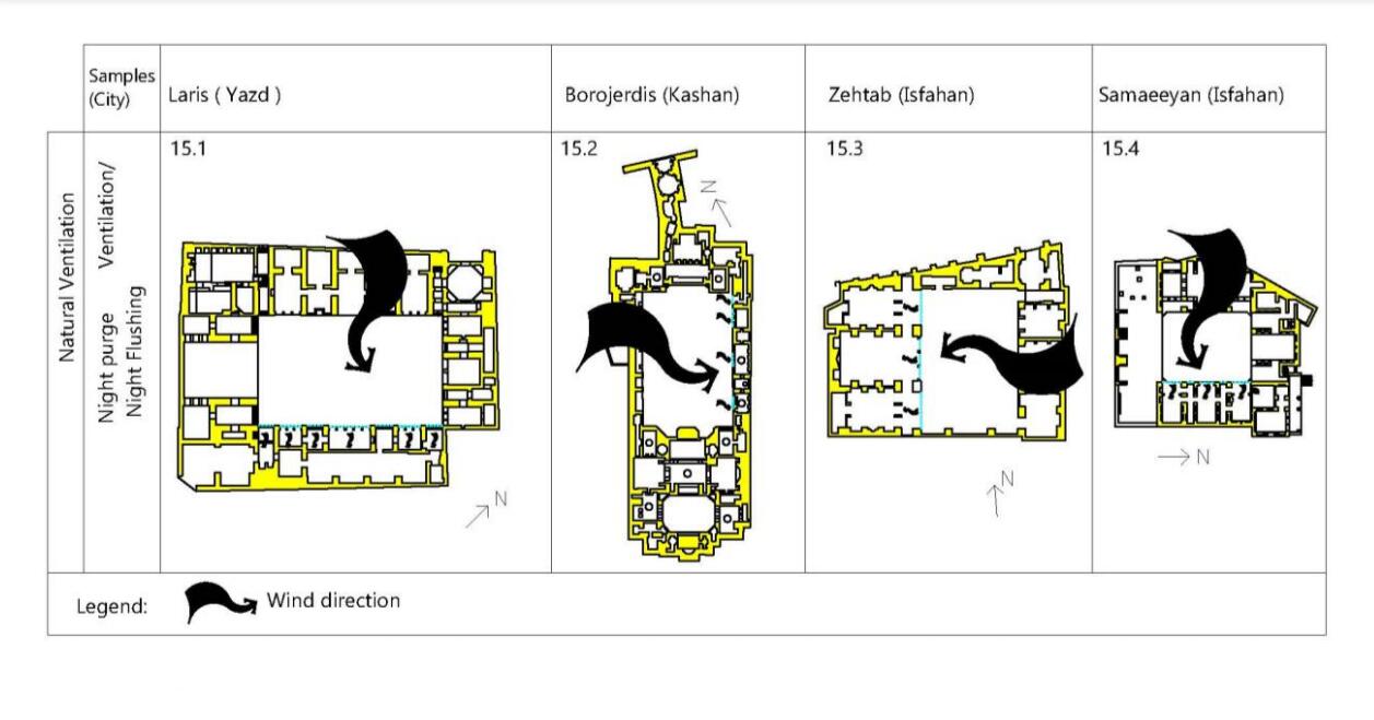 Findings suggests that the sustainable and passive methods used in traditional houses in Iran have the potential to be applied to the modern and contemporary buildings of 21st century. The methods are backed up with natural systems and therefore, are valid regardless of the time. For example, hot air always rises facilitating the stack cooling effect; or knowing the fact that sun always rises in the east and sets in the west can inform people’s relocations to stay cool in the house daily and seasonally.