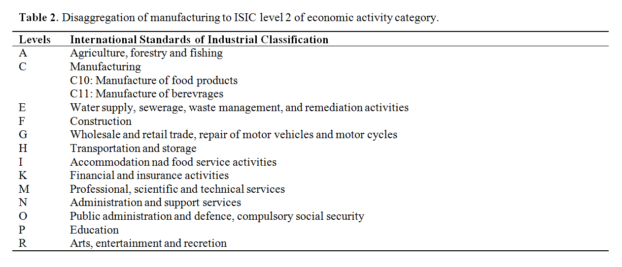 Table 2. Disaggregation of manufacturing to ISIC level 2 of economic activity category.