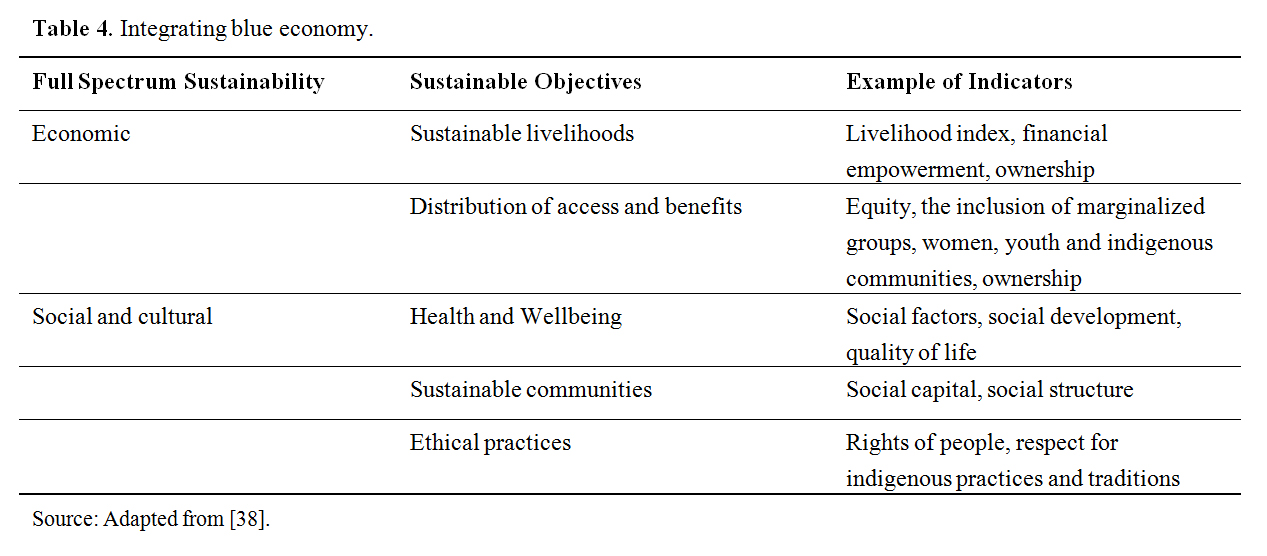 Table 4. Integrating blue economy.