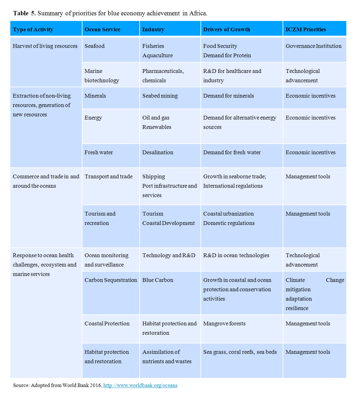 Table 5. Summary of priorities for blue economy achievement in Africa.