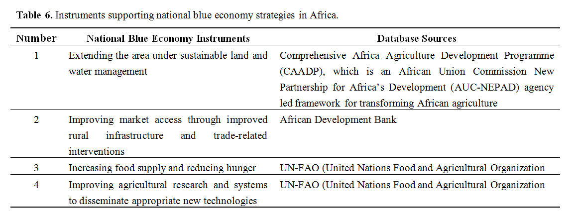 Table 6. Instruments supporting national blue economy strategies in Africa.