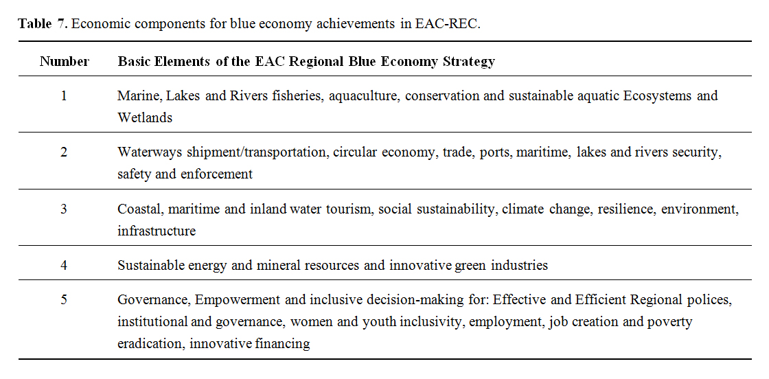 Table 7. Economic components for blue economy achievements in EAC-REC.