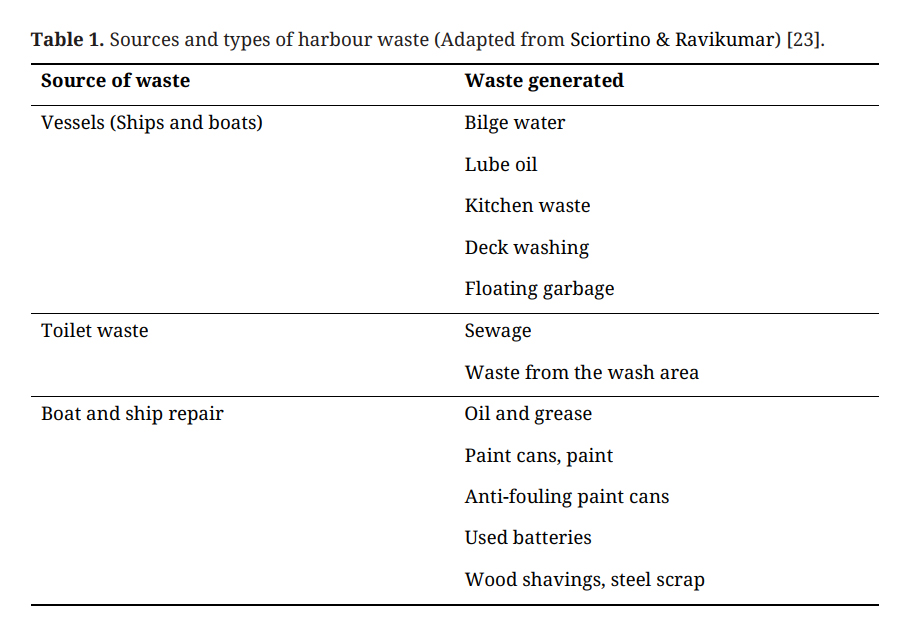 Table 1. Sources and types of harbour waste (Adapted from Sciortino & Ravikumar) [23].
