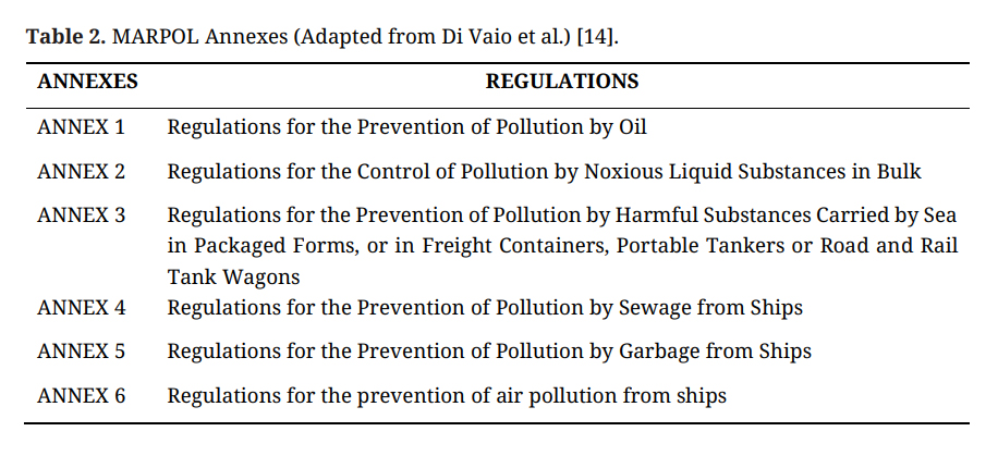 Table 2. MARPOL Annexes (Adapted from Di Vaio et al.) [14].