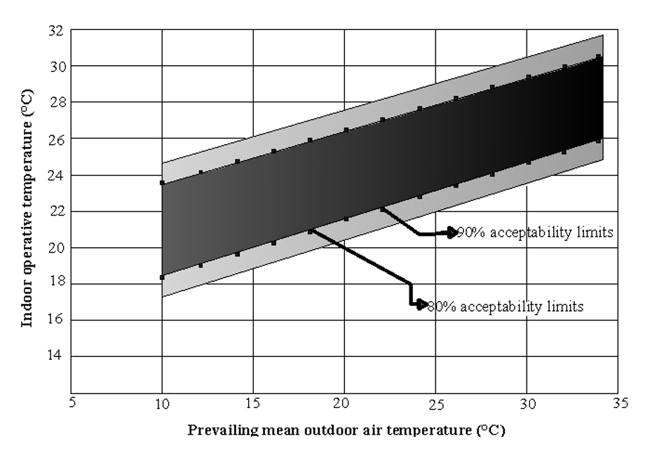 Figure 2. Acceptable operative temperature ranges for naturally ventilated spaces [46].