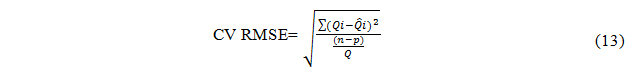 Where, Qi = measured energy consumption and Qi= simulated energy consumption, n = 12, p = 1.