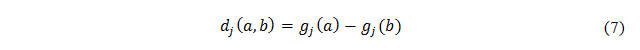 Where dj (a,b) is the difference between the evaluations of a and b on each criterion.