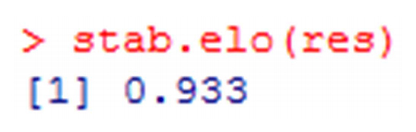 The calculations also provide stability measures. These metrics assess the rate of convergence toward a stable hierarchy. The S index, for instance, ranges from 0 (unstable) to 1 (perfectly stable) and is based on rank changes [14]. As an alternative to the Elo score, the David’s score, a measure of hierarchical dominance used in biostatistics, can be inferred from the sample interaction matrix (percentage of wins for each animal). Figure 15 saw S index, these are the measures are implemented in the R package Elo Ratings the equivalent David’s scores mentioned in Figure 16.