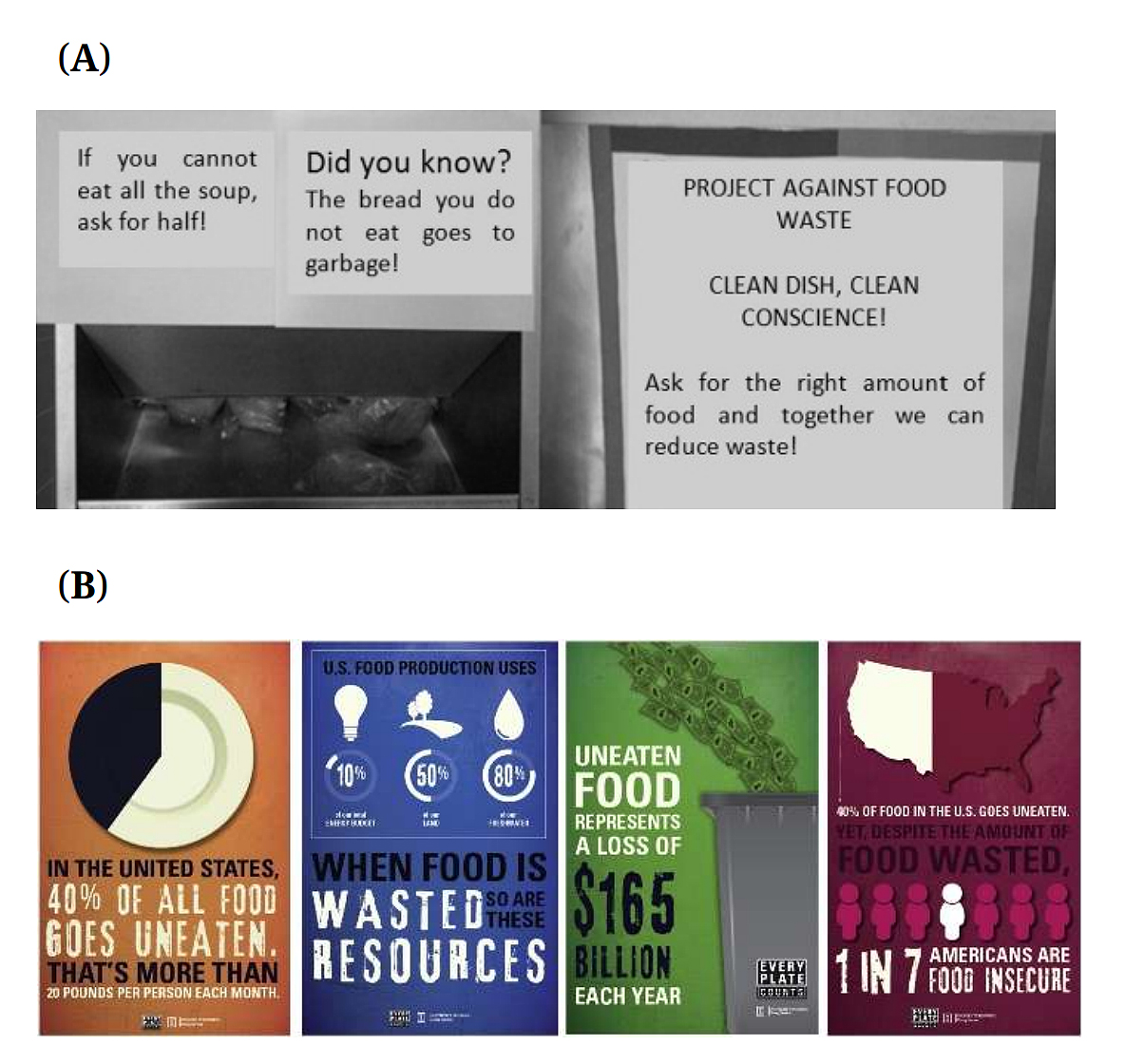 Likely, the variable quality and accessibility of educational materials used in passive education campaigns may alter their effectiveness. As with all communication techniques, visuals, like infographics, are useful for memory recall, as they decrease the amount of cognition needed in processing information [64]. Effectiveness, however, varies based on the organization and structure of the visual. Infographics that clearly communicate information to a targeted audience have consistency, key messages, a balance of words and images, a flow, and an accessible format [65–67]. Effective behavior change communication through visual materials requires the message to be concise and understandable with culturally relevant designs, minimal text, and a single call to action. For maximum impact, these materials should be integrated into a broader communication strategy that considers local context, strategic placement, accessibility, and community input. A 2022 study found that less authoritative and controlling messages, such as “Reduce Food Waste” instead of “Stop Food Waste” were more effective in increasing consumer willingness to address FW [68]. This is likely due to psychological reactance—the tendency for individuals to intentionally resist messages perceived as coercive [69]. When people feel pressured, they may react by doing the opposite of what is being urged. Additionally, the study reported that simple messages emphasizing social welfare and environmental benefits were more persuasive than those highlighting economic costs [68]. This indicates that the framing of the message also plays a crucial role, with research showing that gain-framed messages, which focus on positive outcomes, are more effective at motivating change than loss-framed messages [70]. For example, a gain-framed message might be “Take only what you’ll eat—reduce waste, save money, and support a sustainable campus” whereas a loss-framed message would have a more negative slant: “Wasting food raises costs, harms the planet, and takes resources away from others.”
