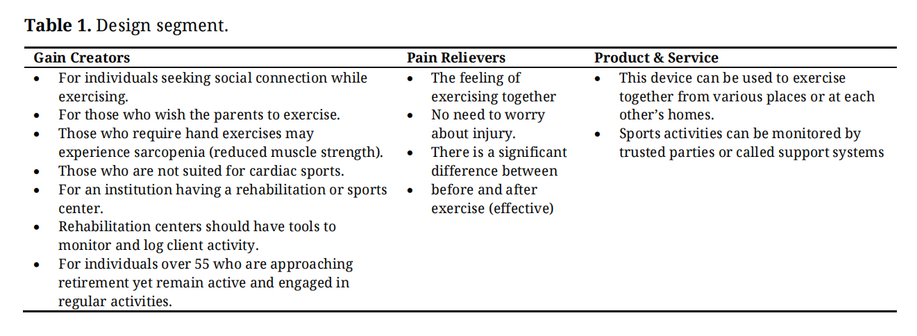 KEYWORDS: gerontechnology; Indonesian older adult; Osterwalder’s Value Proposition Design; prototype design iteration; sustainable strength training