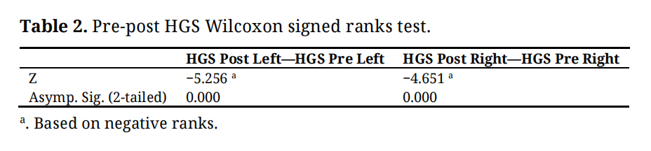 Table 2. Pre-post HGS Wilcoxon signed ranks test.