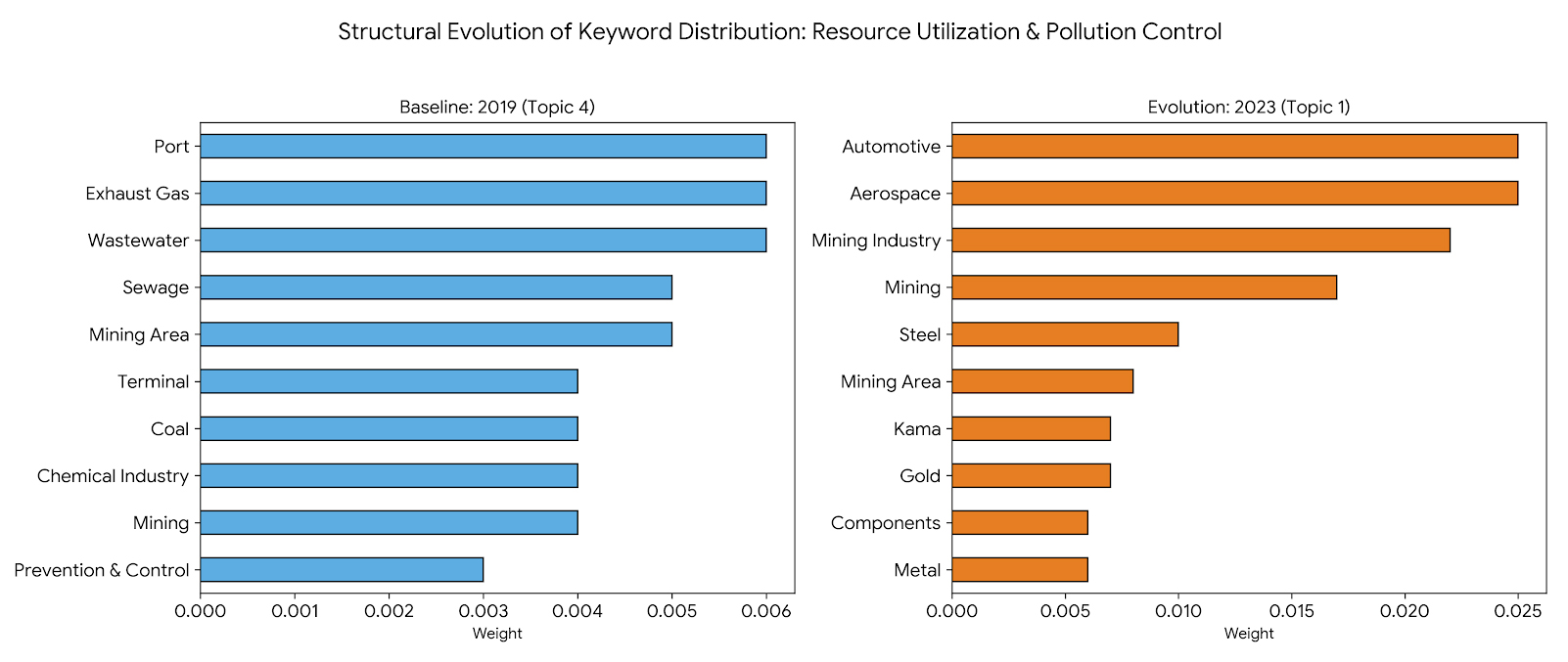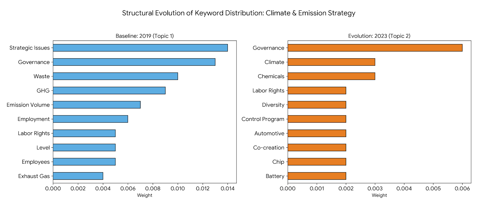 Figure 5. Structural Evolution of Keywords Distribution: Climate & Emission Strategy (2019 vs. 2023).